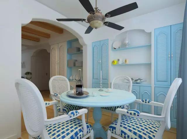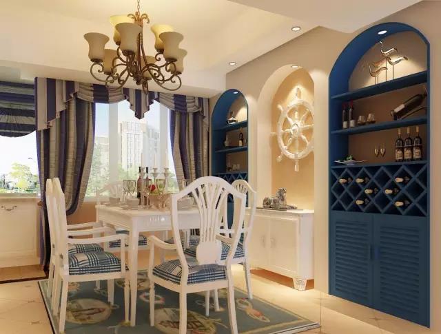 發(fā)現(xiàn)國內設計師很喜歡在餐廳壁櫥上來體現(xiàn)地中海元素哦。