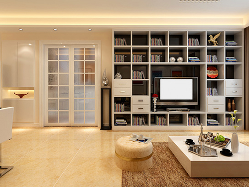 整體體電視柜則可以更好地利用好墻面空間,為了方便美觀,可以根據(jù)28原則設置,漏2成,藏8成。這樣的收納空間增加會很多,而且不會影響美觀性。