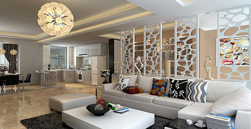 很多人習慣在客廳和餐廳之間使用屏風之類的裝飾物進行隔斷,其實用隔斷柜代替屏風進行隔斷,可以大大增加收納空間。例如上圖的客廳隔斷柜,最上面和中間是開放式的,不影響光線傳遞,還可以擺放部分裝飾品,既美觀又實用。