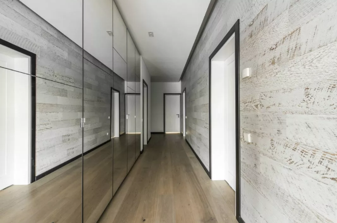 用石膏板或各種飾面板壓住地面,遮擋住地面縫隙,相當(dāng)于整面墻都成為了“踢腳線”。