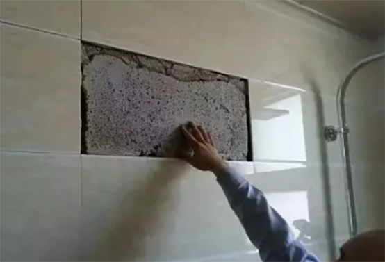 墻基鋪貼前沒有充分濕潤,造成水泥砂漿和磚體里的水被吸走,砂漿在凝固時間內(nèi)沒有足夠的濕度,無法充分粘結(jié)瓷磚。