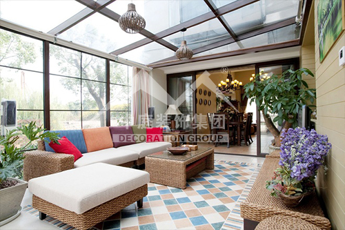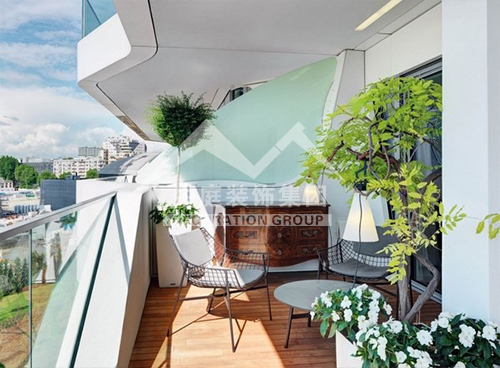 如果是陽(yáng)臺(tái)面積較大又位于頂樓,應(yīng)該屬于“露臺(tái)”??稍陉?yáng)臺(tái)上加透明的弧形采光頂,就可使陽(yáng)臺(tái)當(dāng)作房間使用。陽(yáng)光通過(guò)采光板灑向用文化石做的墻壁,以及青石板鋪成的地面,而且也照亮了“人”字型的鵝卵石小徑……這些園林造景手法,用在陽(yáng)臺(tái)上,會(huì)給人濃濃的休閑氣息。