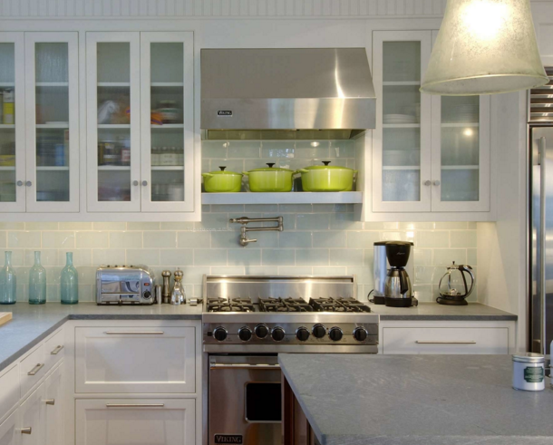 2、眾所周知,玻璃具有很強(qiáng)的透亮性,并且顯現(xiàn)效果也極佳,不會(huì)讓人覺(jué)得壓抑,所以在小房型的裝扮中,必然少不了玻璃材質(zhì)的運(yùn)用,尤其是廚房吊柜中玻璃邊框的采用,非常具有現(xiàn)代感,另外在挑選櫥柜顏色時(shí)避免使用黑色、深棕色等較暗的色彩。