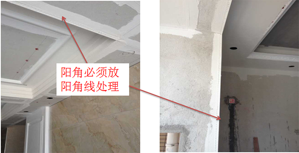 陰角彈好墨線用石膏打平,陽(yáng)角用陽(yáng)角收直口。