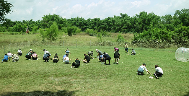 在草坪上捉雞和撿雞蛋的比賽,需要隊員之間相互合作,相互協(xié)調,相互幫助,才可以快速完成任務,贏得比賽。同時也增強了各部門、同事與同事之間的密切溝通交流,有利于提高團隊的凝聚力。