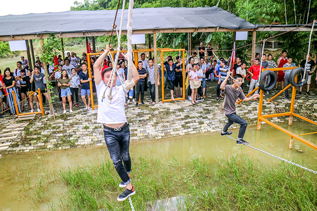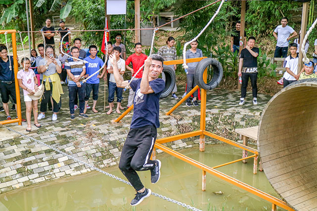 通過障礙賽,爬滑索,爬空中繩索,鼓勵員工參加有趣且富有挑戰(zhàn)性的活動,來挑戰(zhàn)自己,來減緩壓力,可鍛煉個人的膽量。