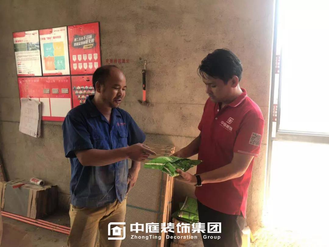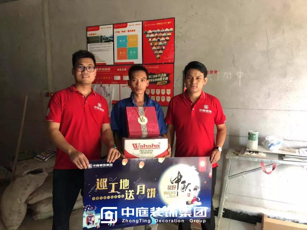 工程質(zhì)量的好壞是檢驗(yàn)一個(gè)裝修公司實(shí)力的標(biāo)準(zhǔn)之一,中庭裝飾集團(tuán)一直把提升工地質(zhì)量作為首要工作,所有施工工地均是高標(biāo)準(zhǔn),嚴(yán)要求,在工程質(zhì)量上始終嚴(yán)格把關(guān),只為打造更多幸福品質(zhì)家。高品質(zhì)工地的輸出也離不開奮戰(zhàn)在一線的匠人們的付出,在中秋來臨之際,集團(tuán)特地為工人師傅們送去了關(guān)懷。