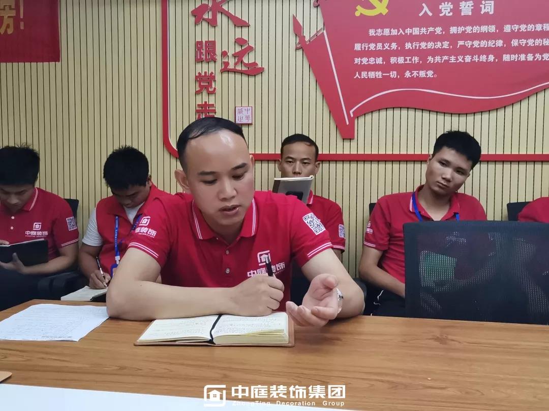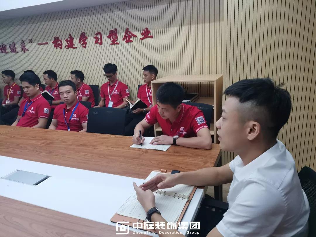 ▲總裁丁總現(xiàn)場(chǎng)與工人師傅詳細(xì)講解工藝標(biāo)準(zhǔn)