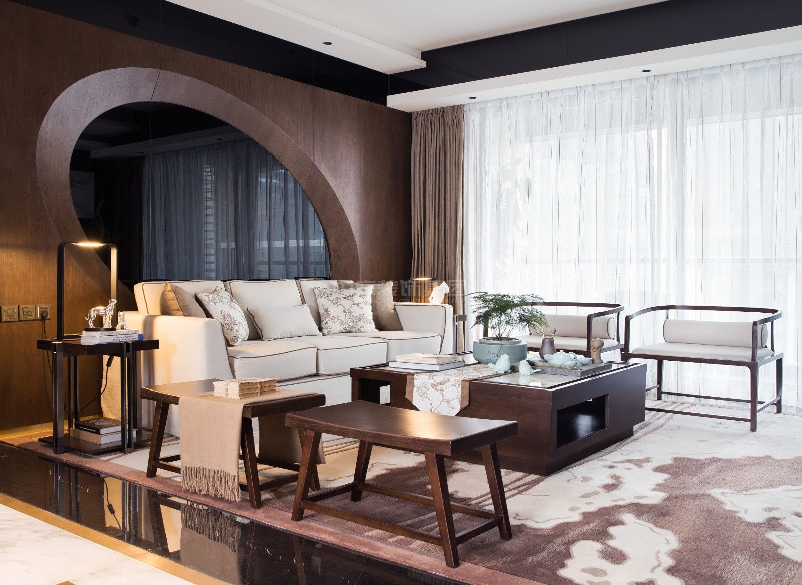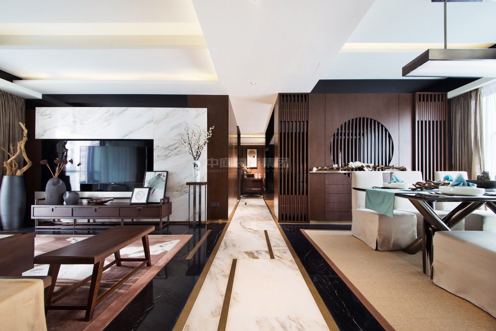 紅日山湖120㎡新中式風(fēng)格案例