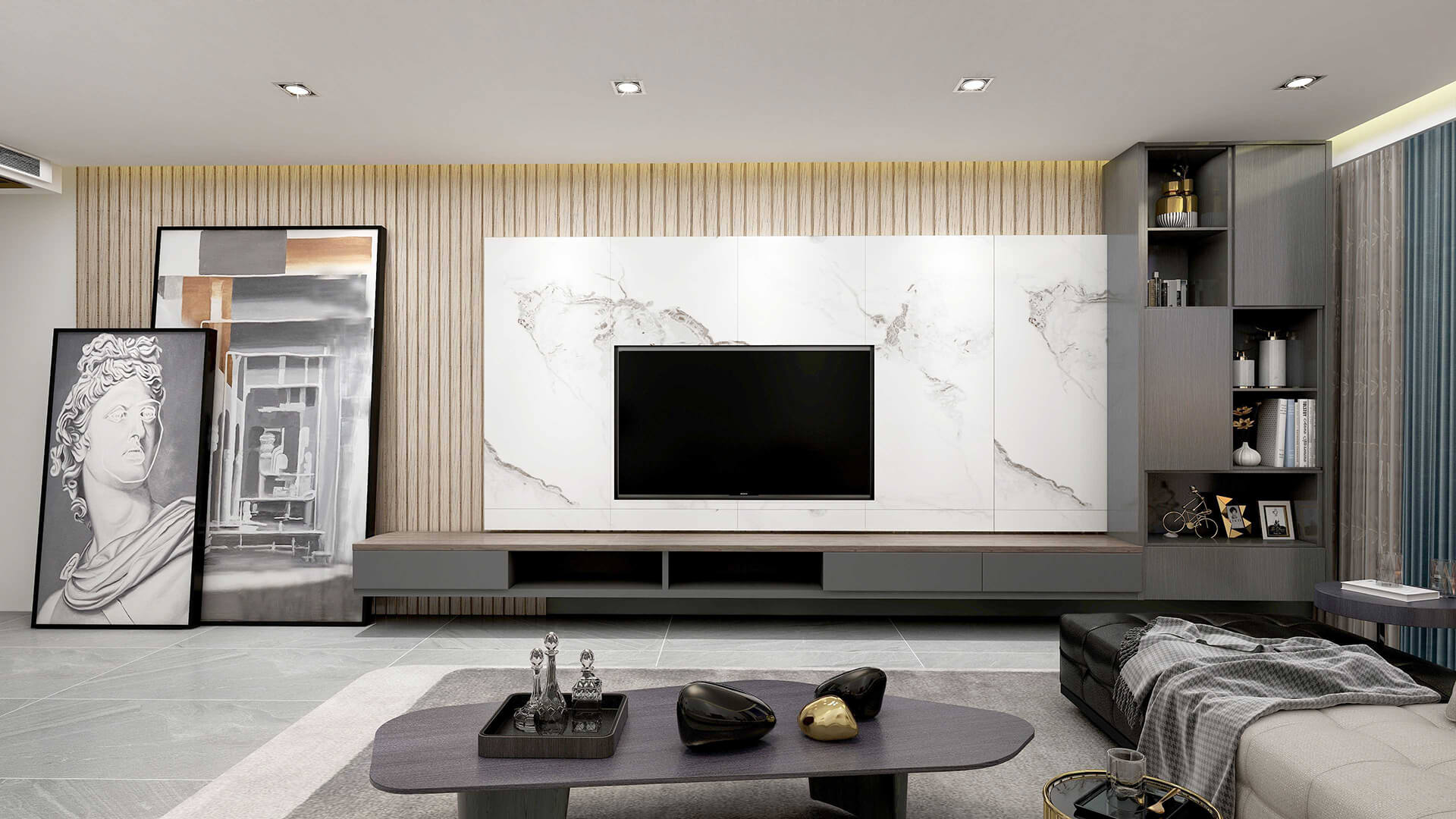 榮和公園里現(xiàn)代簡約風格案例,一個時尚簡約的現(xiàn)代風格套房,面積128㎡,非常寬敞且實用,設計師利用自然光線、燈光,為室內帶來通透明亮的視覺感受,搭配了大量的木質元素以及金屬元素,以最簡單的方式創(chuàng)造出溫暖與舒適。