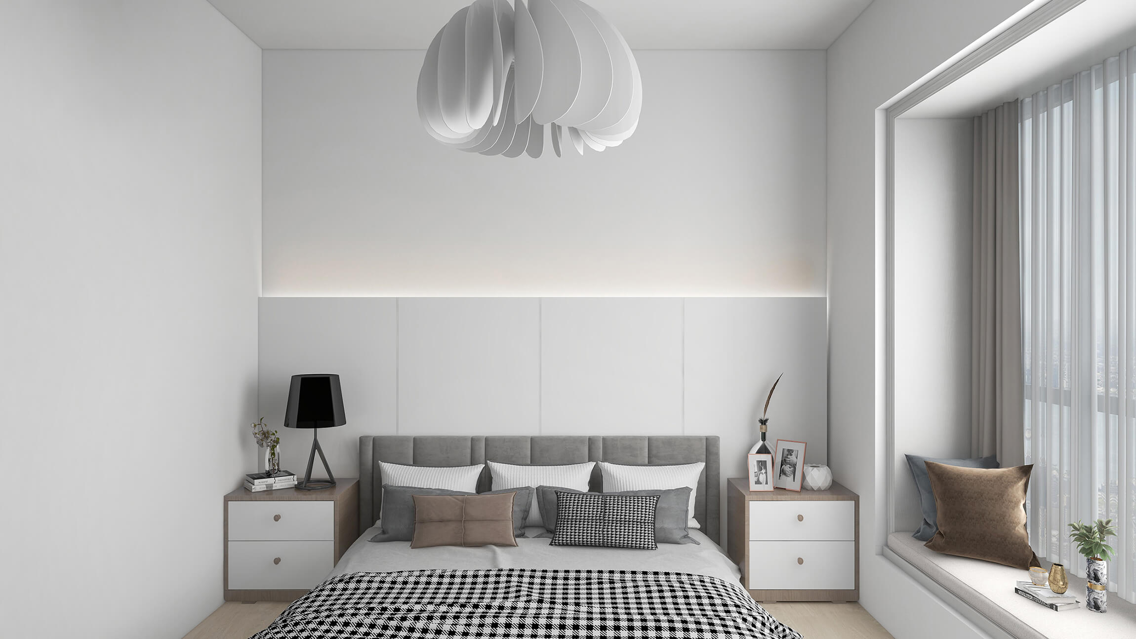 本案戶型為:2房2廳1衛(wèi),總面積69㎡。本案為現(xiàn)代簡約風,簡單明了、舒適時尚的空間,沉穩(wěn)內(nèi)斂的色調(diào),不失高雅、大氣之感的同時,塑造出獨有質(zhì)感的現(xiàn)代空間。