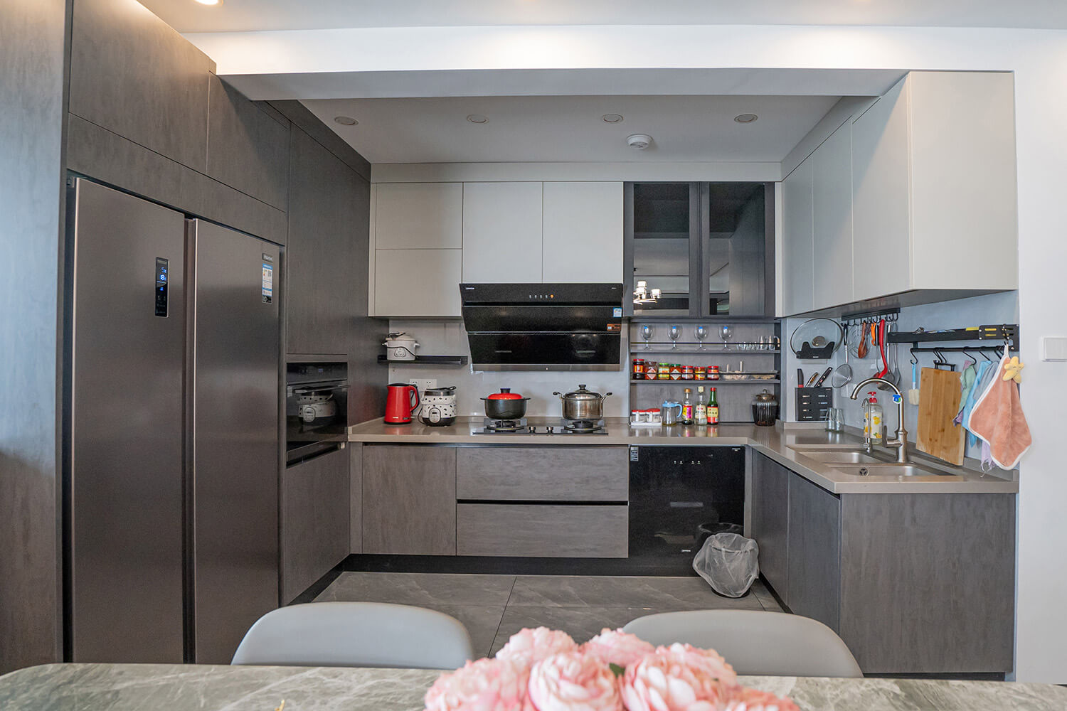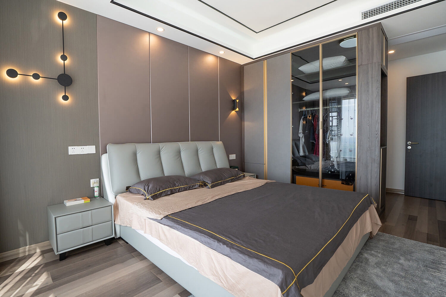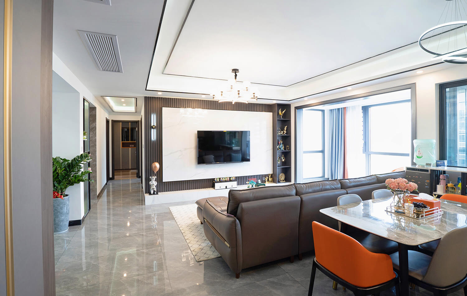 本案戶型為:4房2廳2衛(wèi),總面積126㎡。業(yè)主是4口之家,需要解決空間分布緊密的問題。設(shè)計(jì)師立足于現(xiàn)代輕奢風(fēng),打破傳統(tǒng)的空間格局,通過LDK一體化的設(shè)計(jì),打造開放的生活空間,滿足了當(dāng)代家庭生活的情感需求,實(shí)現(xiàn)了融合式的生活場(chǎng)景。