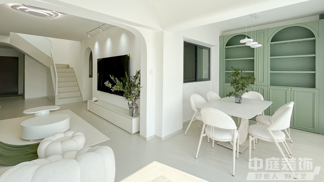 瀏覽量:450這是一套118㎡的復(fù)式住宅,將清新綠與奶油色巧妙融合,營(yíng)造出一種寧?kù)o而溫馨的氛圍,如夢(mèng)如幻的浪漫生活由此開(kāi)始,大面積窗紗將室外光線過(guò)濾后傾撒入客廳。
