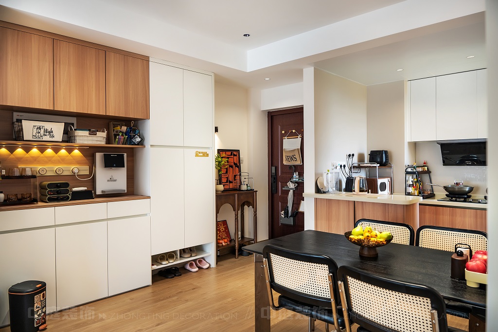瀏覽量:114每一處細節(jié),都是他們對“把日子過成詩,讓家裝滿故事”的詮釋。以原木的溫潤、白調(diào)的清爽為基底,在玄關(guān)處嵌入復(fù)古邊幾,擺上藝術(shù)感的裝飾畫,仿佛時光在此打了個溫柔的結(jié);餐廚區(qū)的咖啡角裝滿對生活的小確幸,與開放式廚房的煙火氣交融,是晨起的咖啡香與深夜的飯菜香的浪漫邂逅;客廳里,黑色皮沙發(fā)搭配復(fù)古風(fēng)抱枕,一旁的藝術(shù)綠植蜿蜒生長,就像主人對生活的熱愛肆意又熱烈。