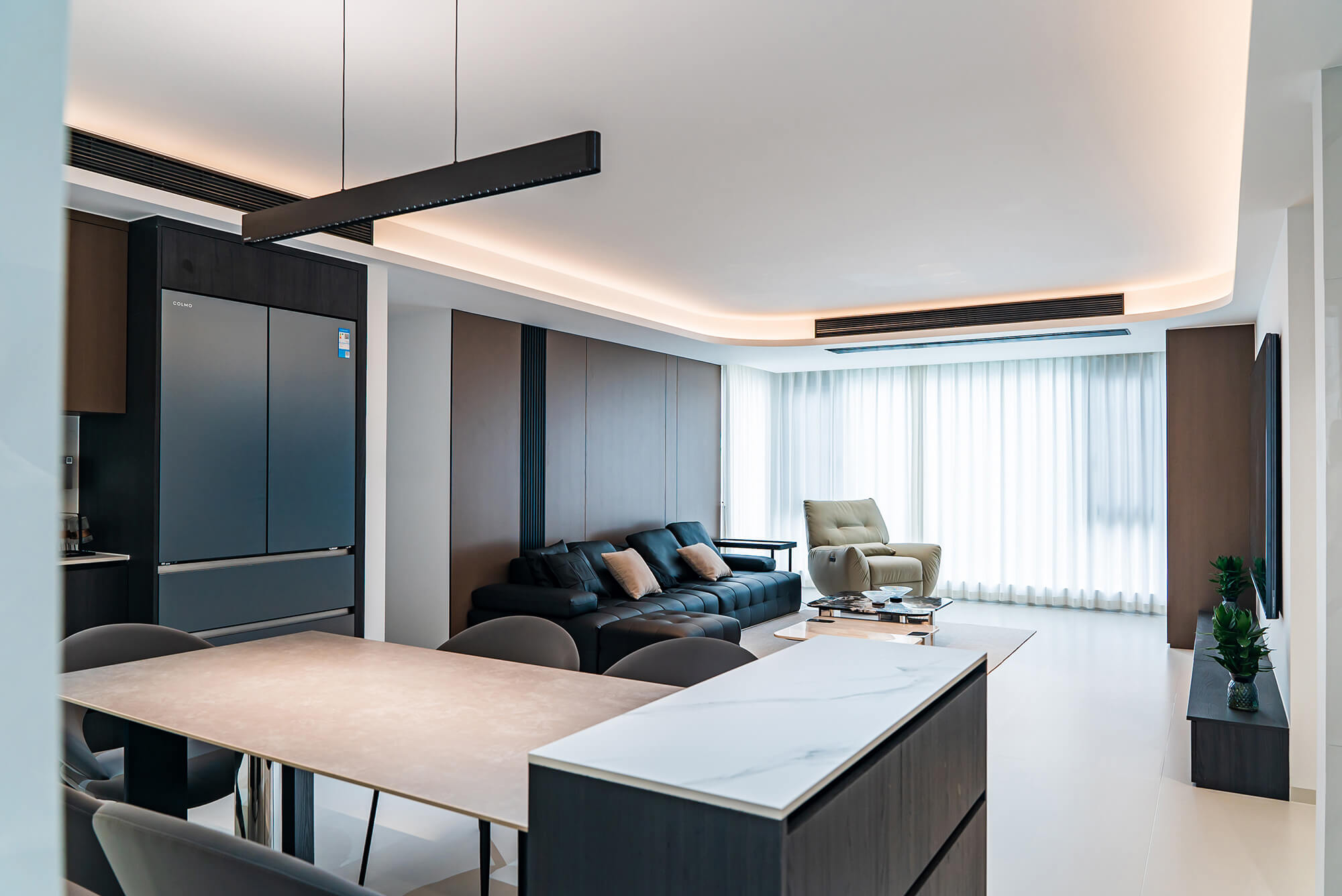 瀏覽量:115極致純粹的色彩美學(xué),以黑、白、灰三個基礎(chǔ)色構(gòu)建空間骨架,通過不同明度、材質(zhì)的層次對比(如啞光水泥、亮面巖板、磨砂金屬)豐富視覺。線條利落干脆,無多余裝飾,注重功能與結(jié)構(gòu)的統(tǒng)一性,打造冷靜、理性、富有高級質(zhì)感的極簡空間。