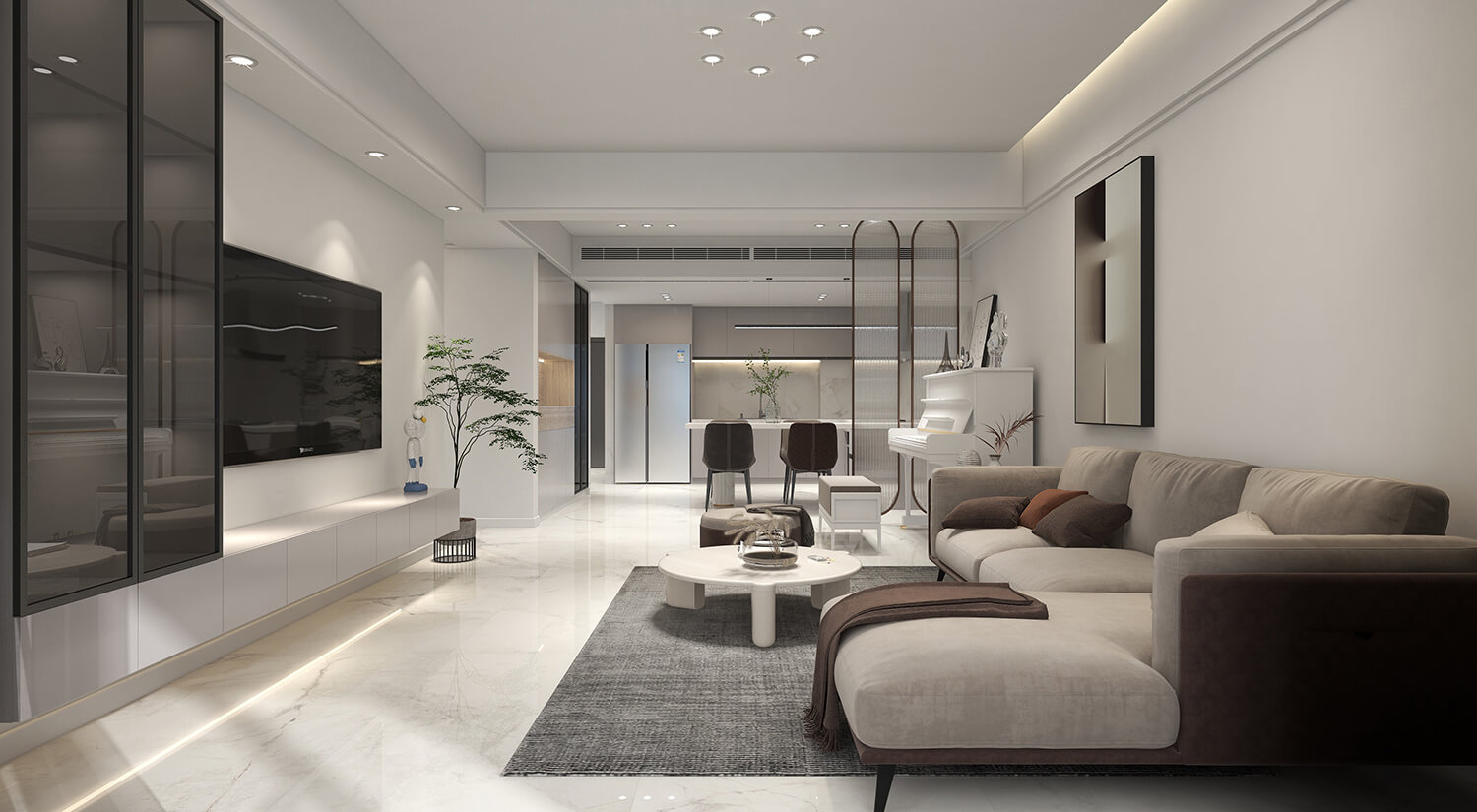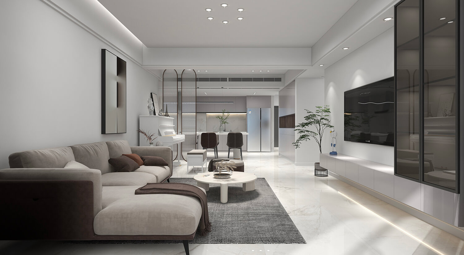 瀏覽量:456本案例戶型為:3房1廳2衛(wèi),總面積149㎡?,F(xiàn)代簡約風(fēng)格以極簡的線條、簡潔的色彩和純粹的形式為主要特征的室內(nèi)設(shè)計風(fēng)格。在這個案例的設(shè)計中,避免過多的裝飾和復(fù)雜的紋理,力求簡單、清爽和現(xiàn)代感。