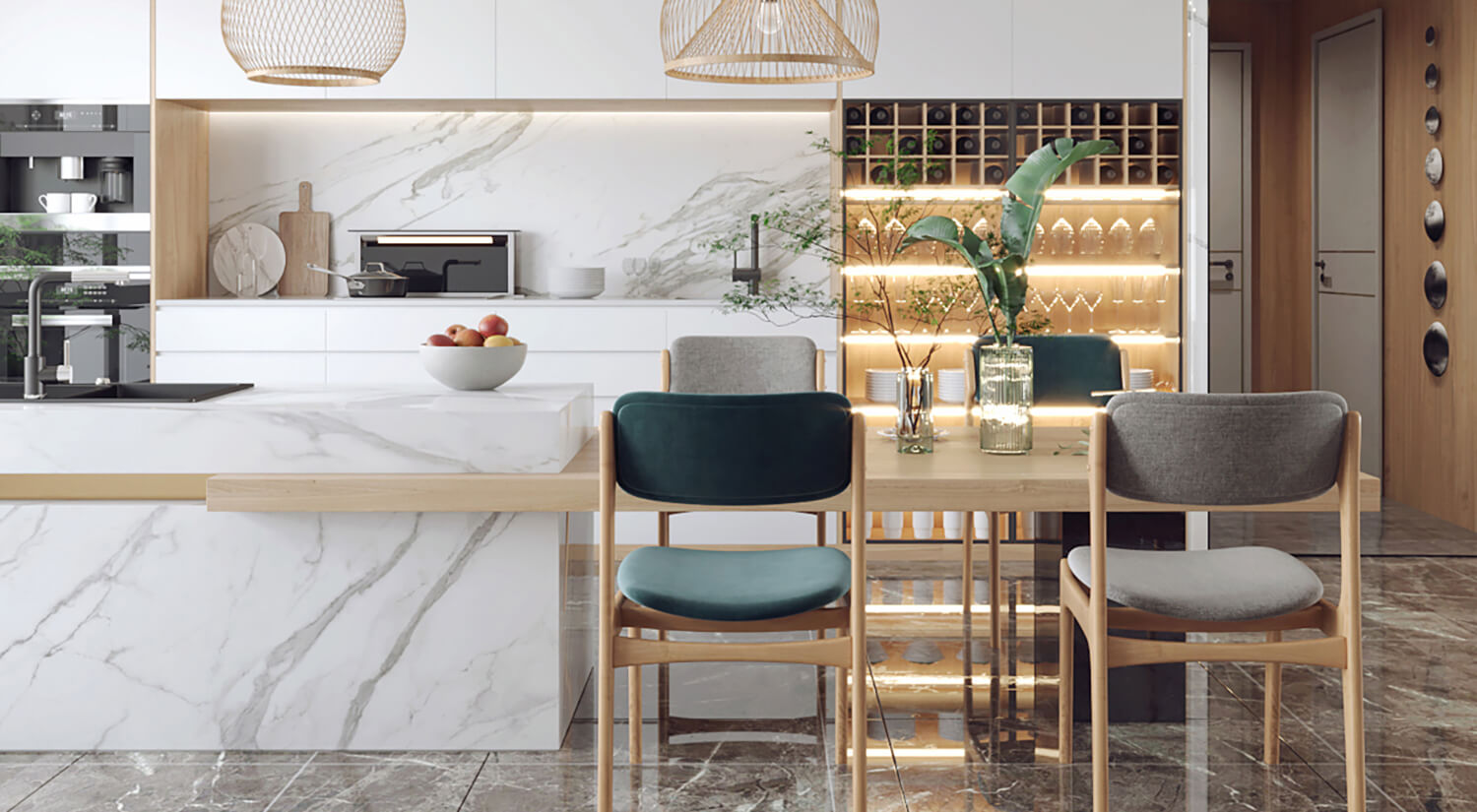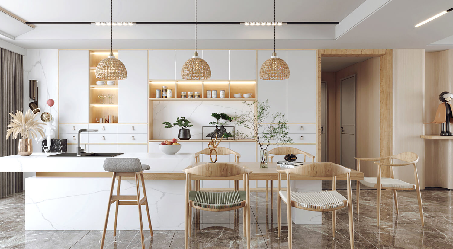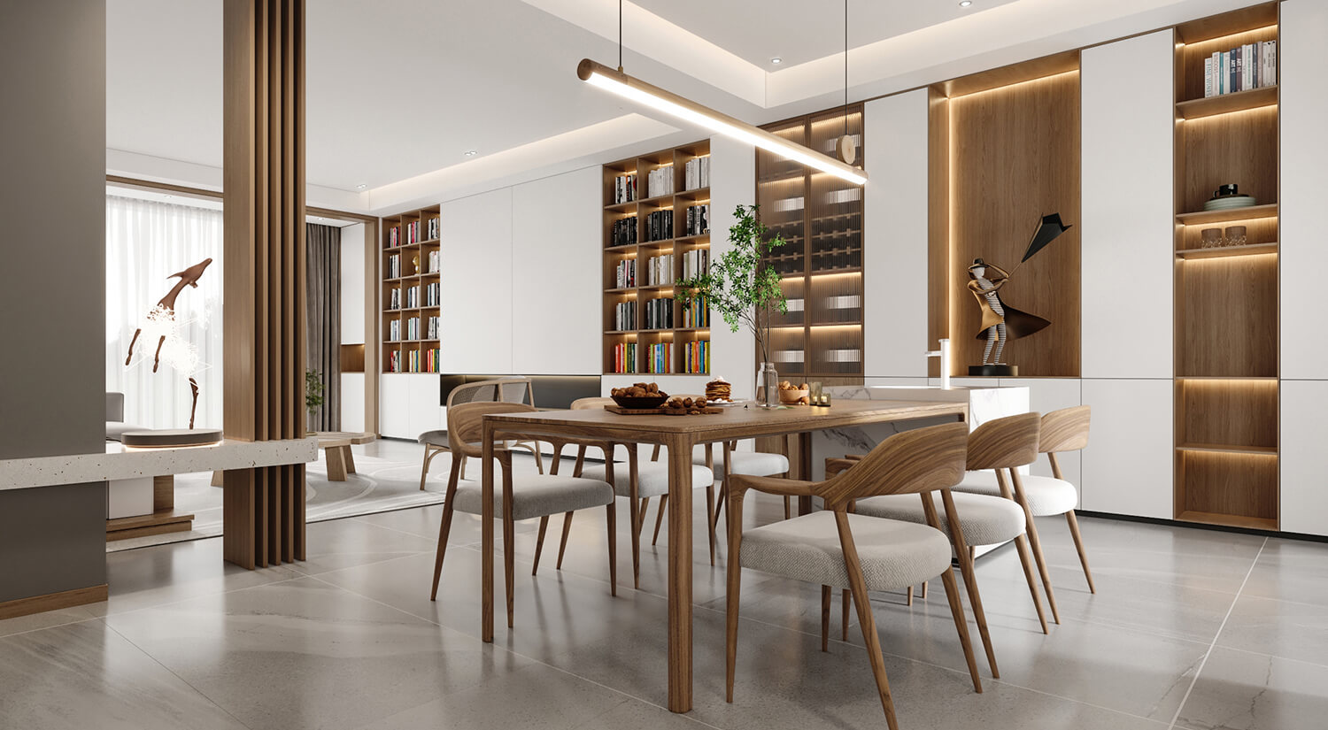 客餐廳使用了大量的木質材料做家具,房間呈現(xiàn)自然、溫暖和舒適的感覺。